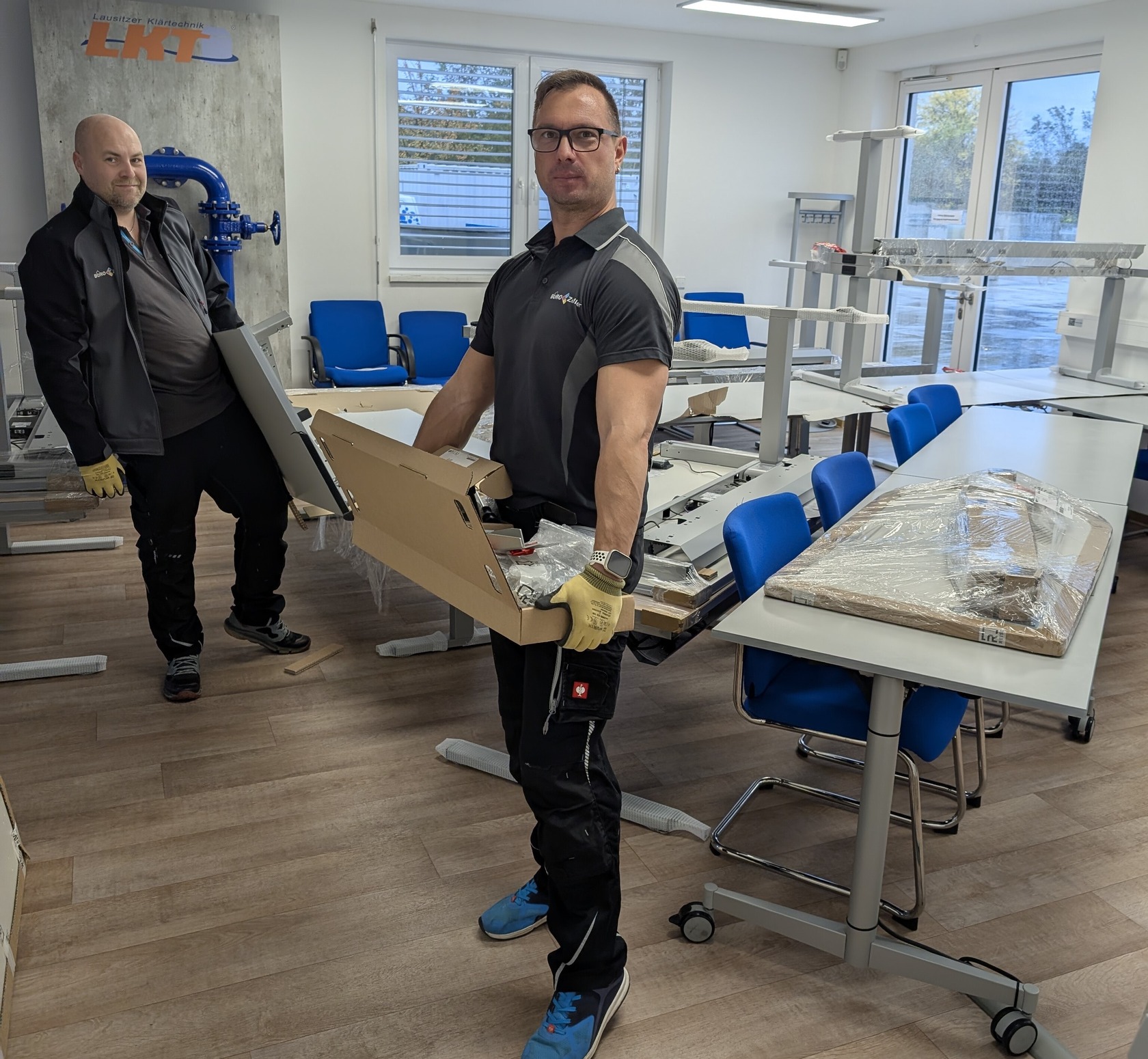 Im Rahmen der JTF-Förderung (Just Transition Fund) werden bei der LKT Lausitzer Klärtechnik GmbH 14 Arbeitsplätze mit höhenverstellbaren Schreibtischen und dem notwendigen Zubehör ausgestattet.